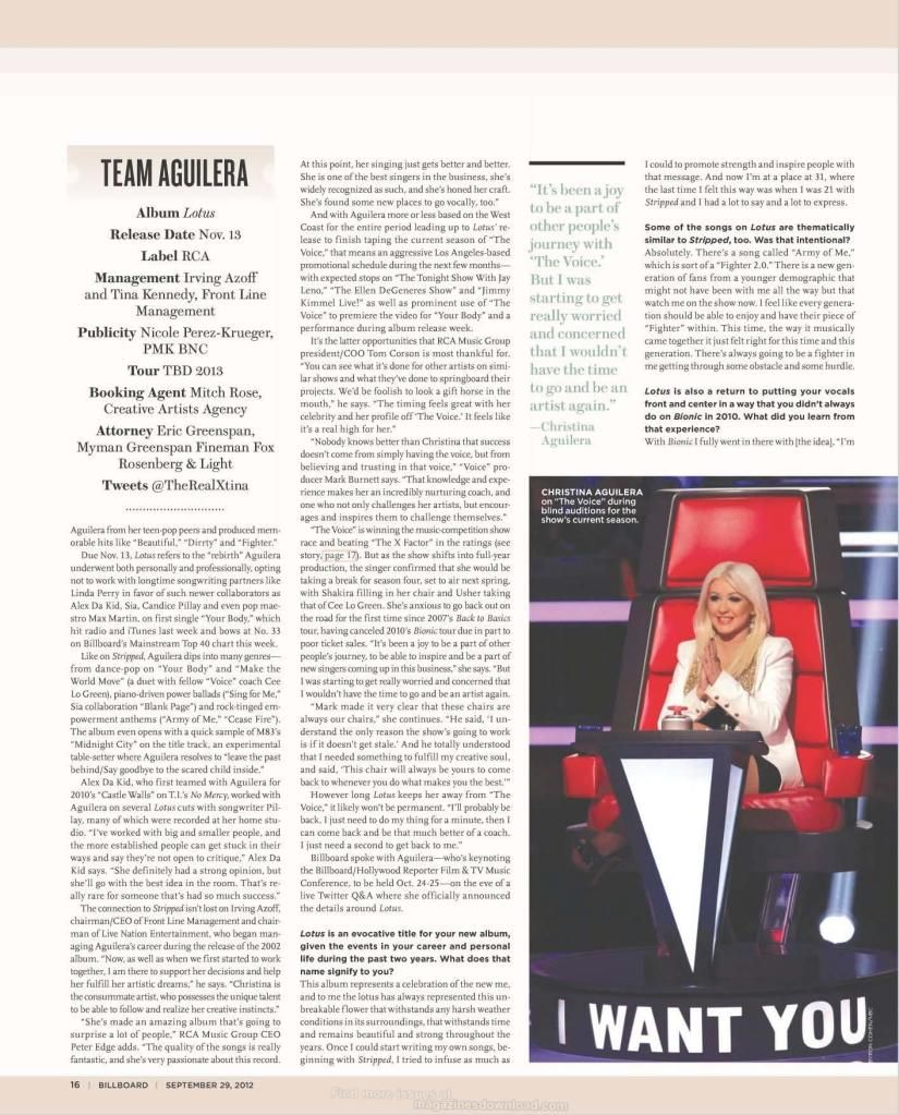 Abaixo encontra-se traduzida na integra a entrevista que Christina deu à Billboard: